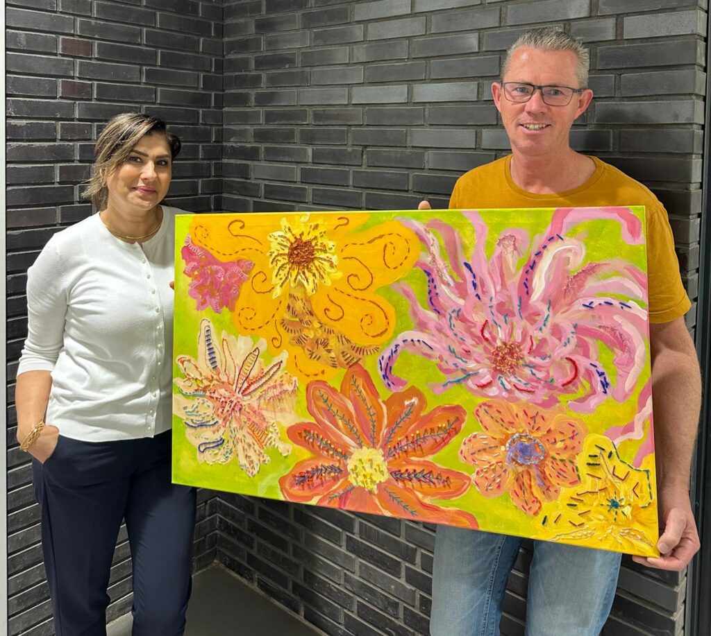 Het kunstwerk dat binnen deze samenwerking is ontstaan, staat in het teken van chrysanten, een symbool voor kleur, vreugde en groei.